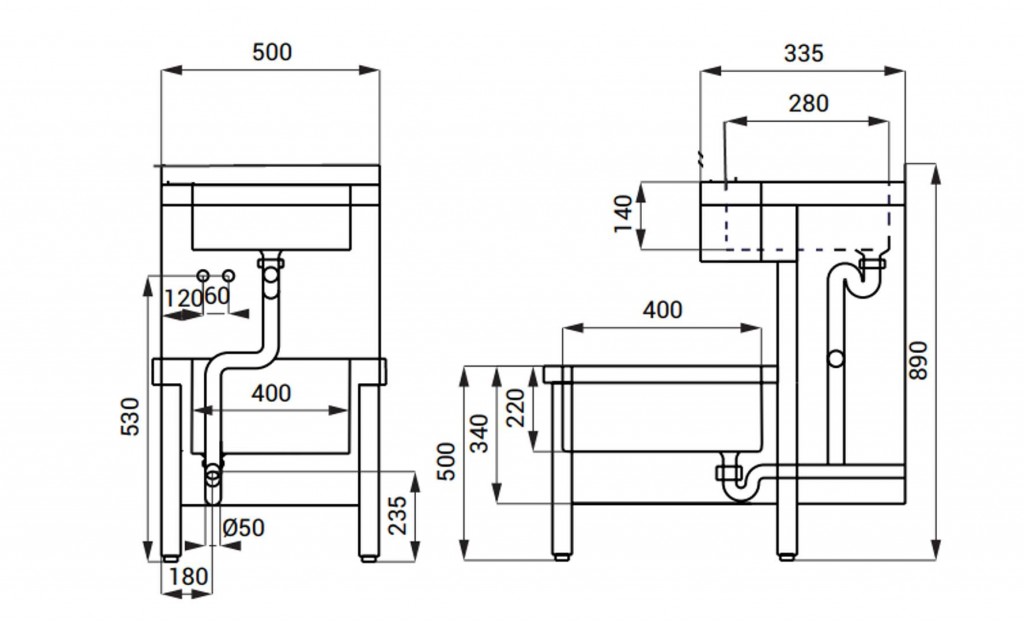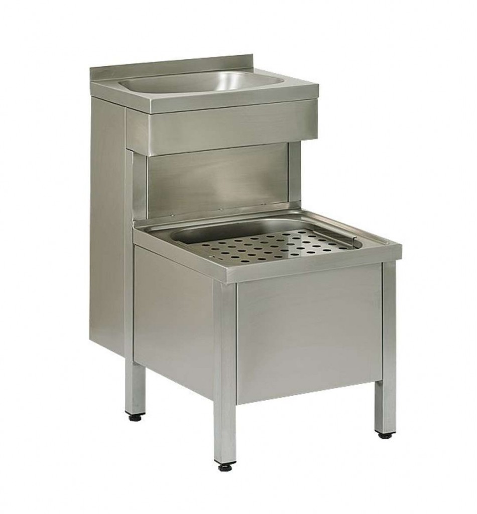 - samostatně stojící nerezová kombinovaná výlevka s umyvadlem a mřížkou