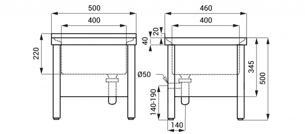 - samostatně stojící nerezová výlevka s mřížkou