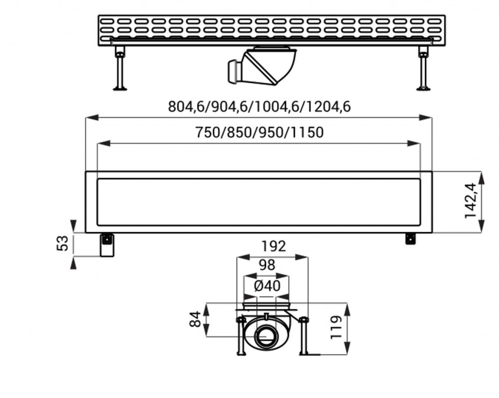 - odpad uprostřed, možnost nastavení směru a sklonu odtoku do 20°