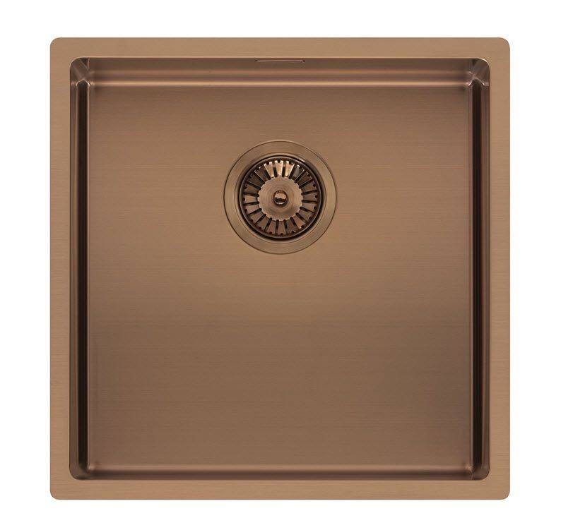 Nerezový dřez 40x40 cm, povrch Copper / měď, montáž horní / do roviny / spodní