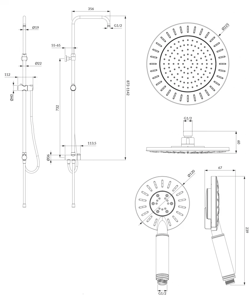 - sprchový sloup s přepínačem a ramenem dešťové sprchy