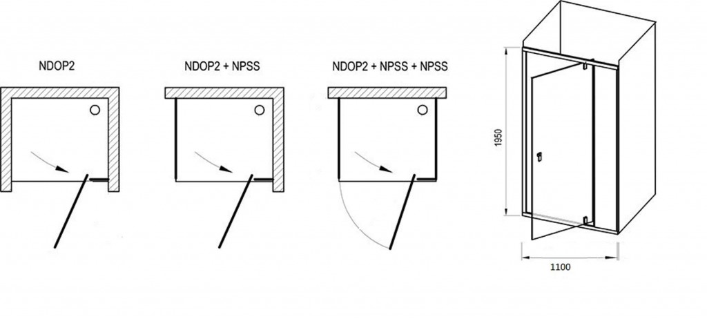 Sprchové dveře pivotové NDOP2-110 bílá/bílá+Transparent