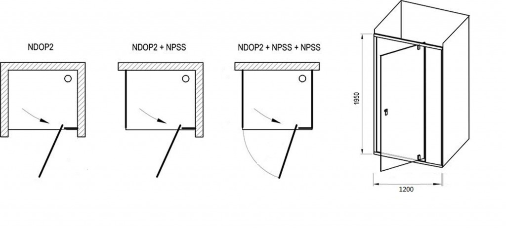 Sprchové dveře pivotové NDOP2-120 lesk+Transparent