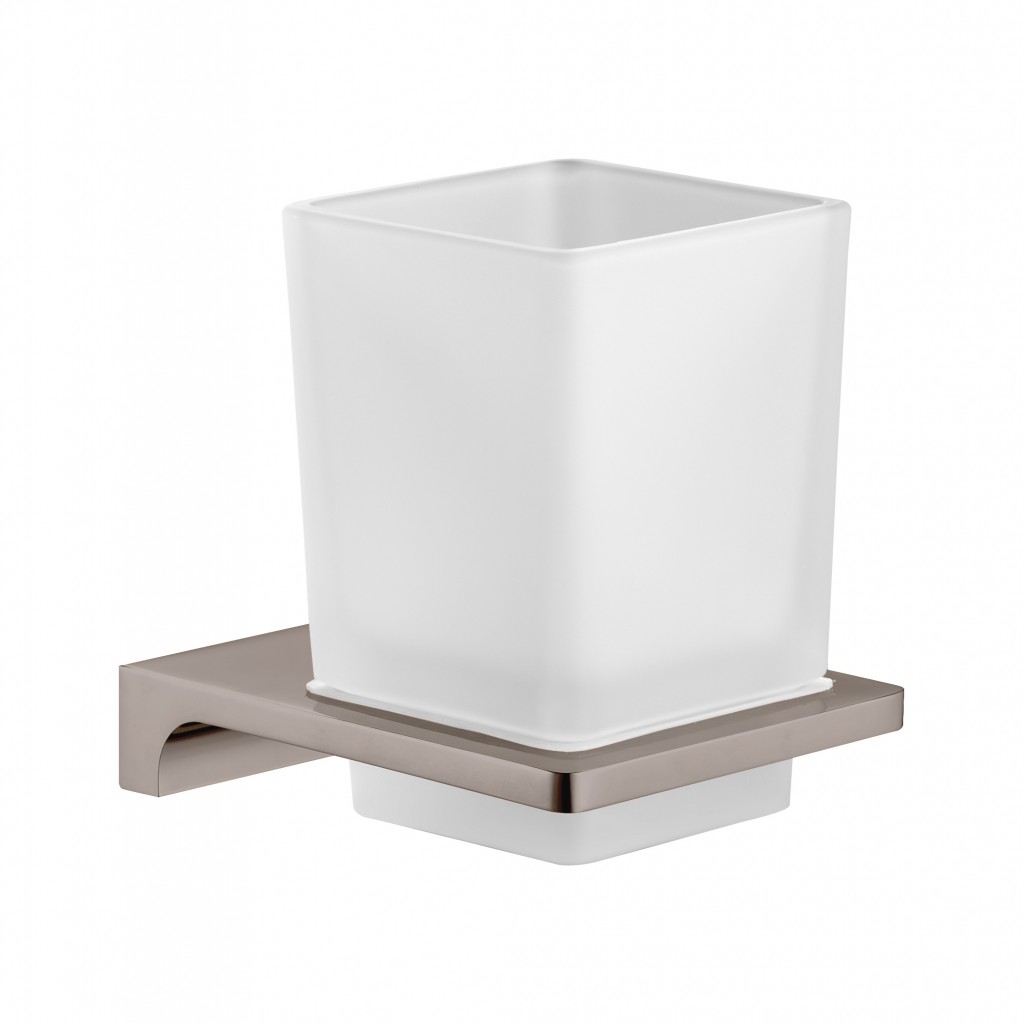 Hranatý chromový držák s pískovanou skleničkou se skvěle hodí ke všem umyvadlům. Sklenička vám každý den zpříjemní osobní hygienu.