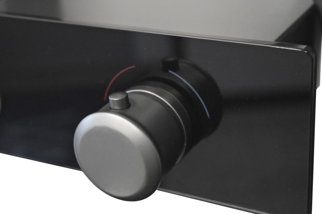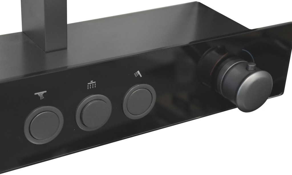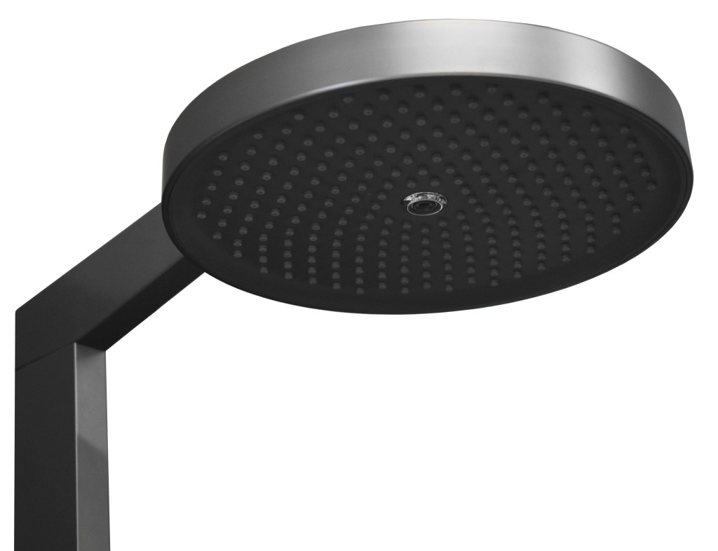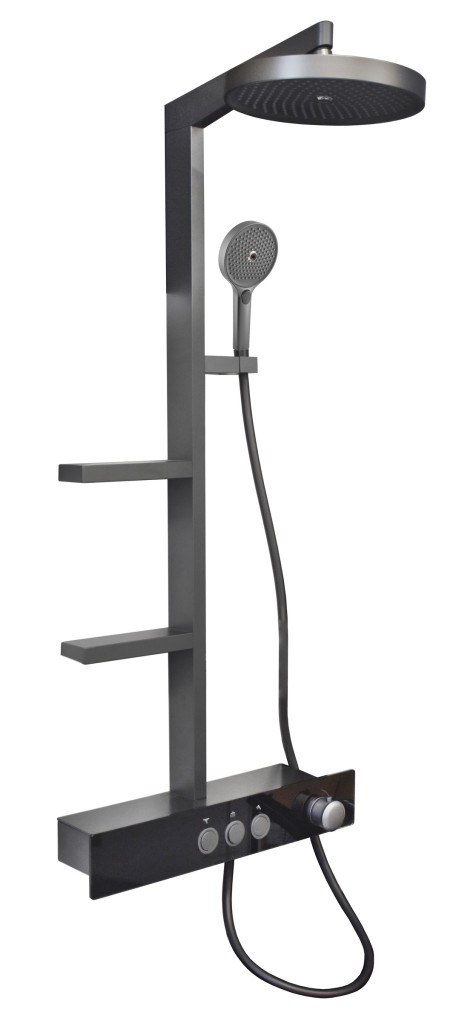Vodovodní baterie sprchová s pevnou tyčí a hlavovou a ruční sprchou, police Metal Grey.