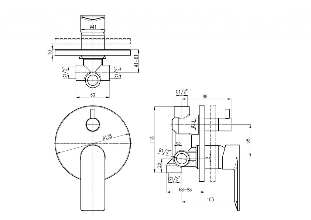 Tuto baterii můžete použít buď do sprchového koutu jako kombinaci hlavové a ruční sprchy a nebo k vaně jako kombinaci např. napouštění přepadem a ruční sprcha nebo výtokové ramínko a ruční sprcha.
