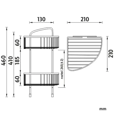 Opusťte konvenční tvary a vsaďte na osobitý styl! I zařízení koupelny o vás mnohé vypoví. Současné trendy se stále stáčejí k využívání chladného kovu a hran. Drátěná rohová police OPEN nabízí sladění moderních prvků i nadčasovosti. Vzdálenost mezi šrouby cca 24,50cm.