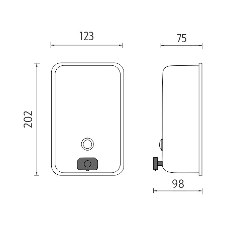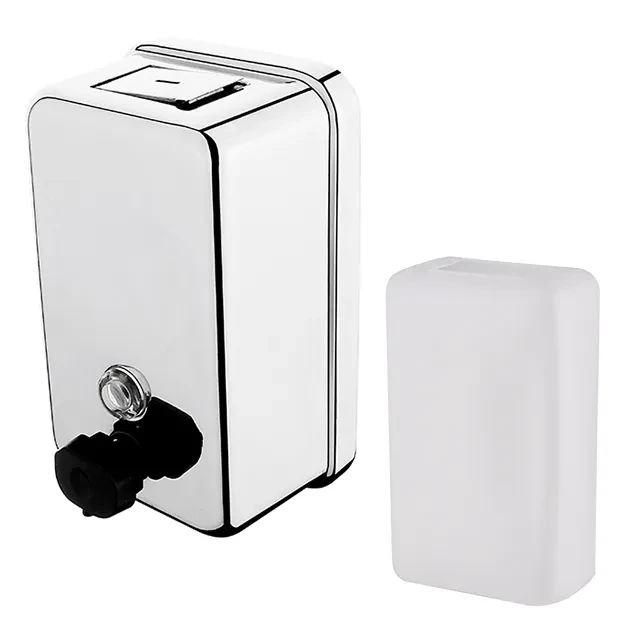 Zásobník na dezinfekční gel nebo tekuté mýdlo vertikální. Leštěná nerez 1.4301. Obsah 1100ml. Pumpička plastová černá. Uvnitř zásobníku se nachází plastová vložka poskytující ochranu nerezového těla dávkovače(viz obrázek). Plastová vnitřní nádoba výrobek chrání a prodlužuje tak jeho životnost. V případě plnění zásobníku dezinfekcí použijte GEL. Pro kapalnou dezinfekci není dávkovač vhodný.