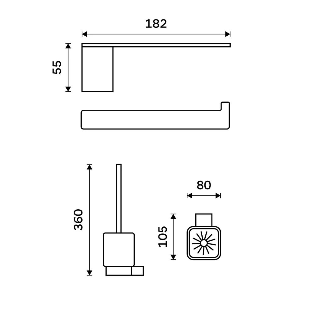 Nimco Kibo chrom SADA k WC Ki set-94KN-26 Základní sada doplňků k WC. WC štětka s keramickým držákem na zeď a držák toaletního papíru Tato sada doplňků k wc obsahuje následující výrobky NIMCO ze série KIBO: Toaletní štětka Ki 14094KN-26 Nástěnný držák s keramickou nádobkou. Rukojeť kartáče chrom, černý kartáč. 1 ks. Držák na toaletní papír Ki-14055E-26 Designový držák wc papíru na zeď, bez krytu. 1 ks. BARVA / ÚPRAVA: Chrom MATERIÁL: pochromovaná mosaz MONTÁŽ A UMÍSTĚNÍ: Nástěnné - vrtání