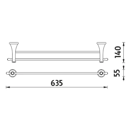 Držák na ručníky dvojitý. Délka 63,5 cm. Materiál mosaz s povrchovou úpravou staroměď.