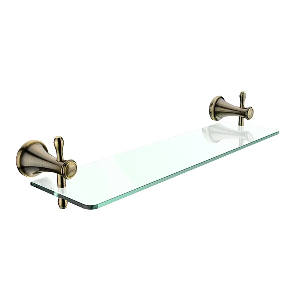 Police. Sklo čiré. Délka 50 cm. Úchyty mosaz s povrchovou úpravou staromosaz.