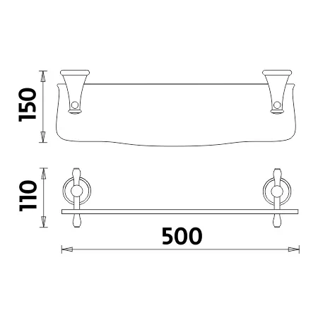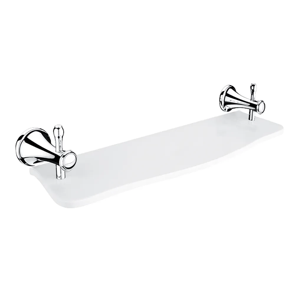 Police z bílého umělého kamene. Délka 50 cm. Úchyty mosaz s povrchovou úpravou chrom.