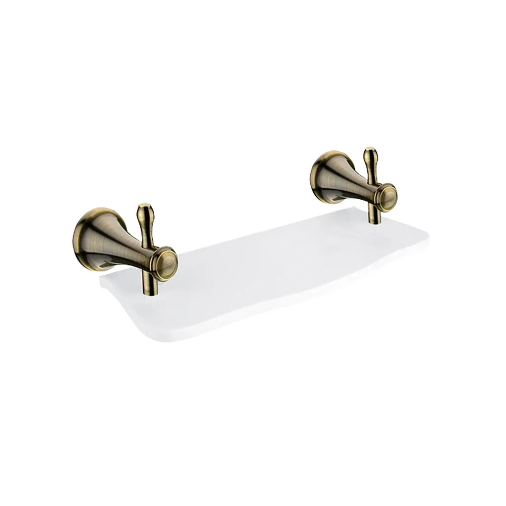 Police z bílého umělého kamene. Délka 30 cm. Úchyty mosaz s povrchovou úpravou staromosaz.