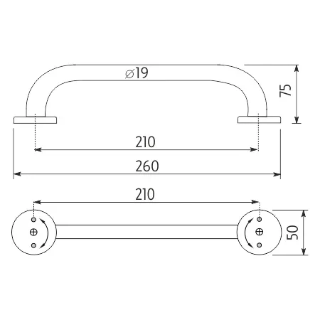 Často bývá koupelně vyčleněna jen opravdu malá plocha. A právě proto, že v této často nejmenší místnosti nebývá příliš prostoru pro estetické doplňky, měli bychom zaostřit svoji pozornost především na předměty, které plní konkrétní funkce. Řešením může být právě některý z následujících výrobků. Uchycení madla na každé straně dvěma šrouby. Vzdálenost mezi šrouby 210mm. Rozteč mezi šrouby na jedné straně 30-36mm.