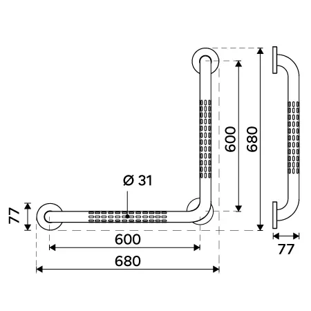 Lomené madlo pro osoby se sníženou schopností pohybu 600 mm. Pomocná madla k vaně, do sprchy, či k WC jsou v koupelně důležitým bezpečnostním prvkem především pro seniory a osoby se sníženou pohyblivostí. Koupelnová madla ulehčují vstávání z vany i WC a snižují riziko podklouznutí ve sprše.