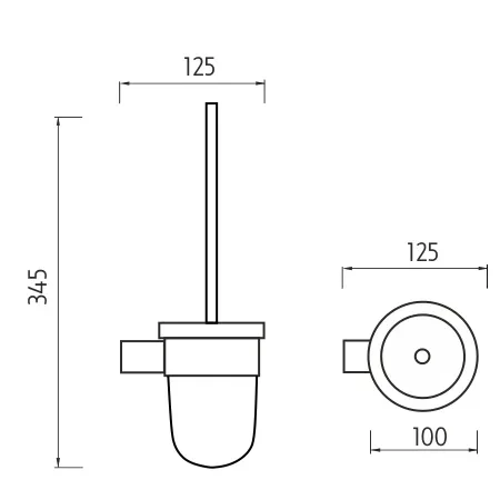 Toaletní WC kartáč. Nádobka nízká z matovaného skla. Kartáč černý mat.