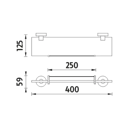 Police s ohrádkou. Sklo extra čiré matované. Rozměr 40x11 cm. Tloušťka skla 8 mm!