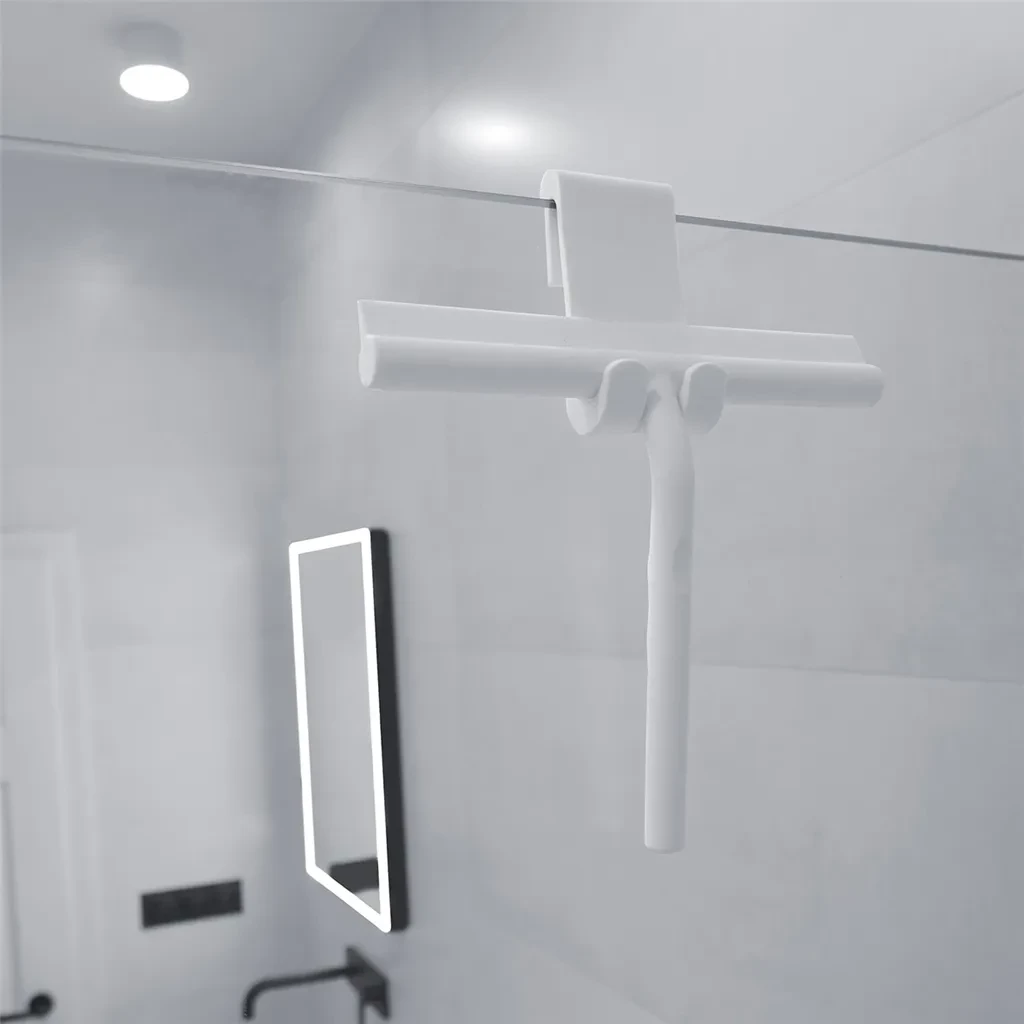 Závěsná sprchová stěrka je určena k zavěšení do sprchového koutu. Tloušťka skla max 10 mm. Stěrka je vyrobena z kovu. Celý její povrch je obalen matným silikonem. Výhodou silikonové stěrky je její pružnost. Při neočekávaném pádu neponičí sprchovou vaničku nebo vanu. Součástí stěrky je silikonový hák pro zavěšení.