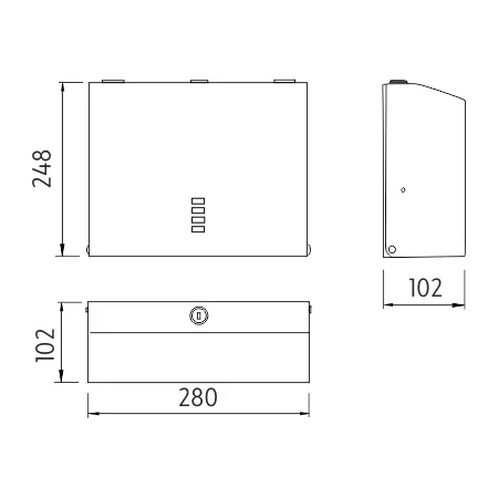 Uchycení zásobníku pomocí 2-3 šroubů, dle potřeby. Rozteč mezi 2 hlavními otvory pro uchycení 229-237mm. Součástí balení jsou 3 šrouby, 3 hmoždinky, 2x bezpečnostní klíček. Doporučené naplnění zásobníku je do 2/3. Rozměry papírových ručníků ve skládaném skladu 23-25cm x 11-12cm. Materiál je vysoce kvalitní broušená nerez ocel 1.4301. Velikost otvoru pro vytahování papírových utěrek je 25cm.
