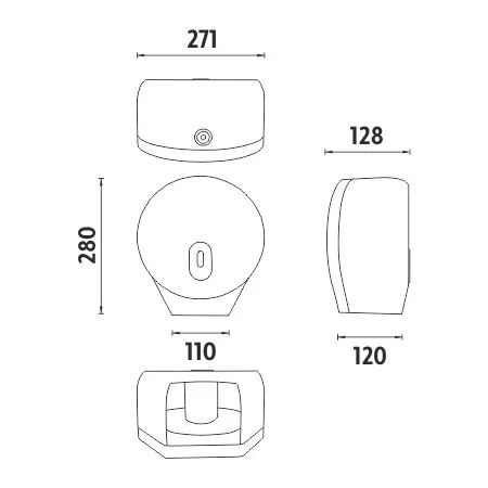 Pro použití na toaletách ve společných prostorách jako jsou firmy, zdravotnická, kosmetická a jiná zařízení jsou vhodné vysoce hygienické toaletní papíry ve velkých rolích, pomocí kterých lze zachovat standardní hygienické podmínky i na velmi frekventovaných místech. Uzamykatelné zásobníky toaletního papíru jsou vyrobeny z odolného ABS plastu. Součástí balení jsou 3 šrouby, bezpečnostní klíč k otevírání zásobníku, nástavec k připadnému otevírání zásobníku bez klíče. Průměr role max. 24cm. Materiál plast ABS-odolný vůči mechanickému poškození. Plast je tuhý, houževnatý, zdravotně nezávadný.