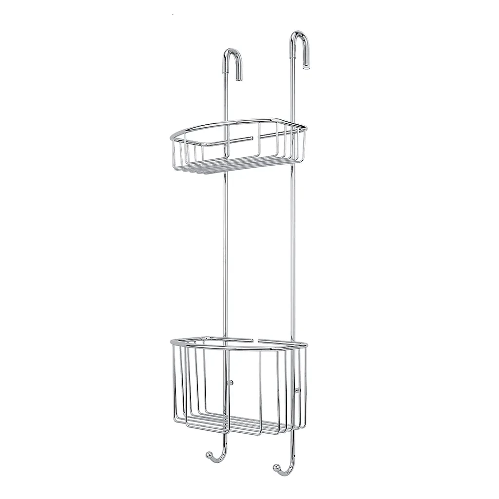 Drátěná police k zavěšení do sprchového koutu se dvěma drátěnými koši.