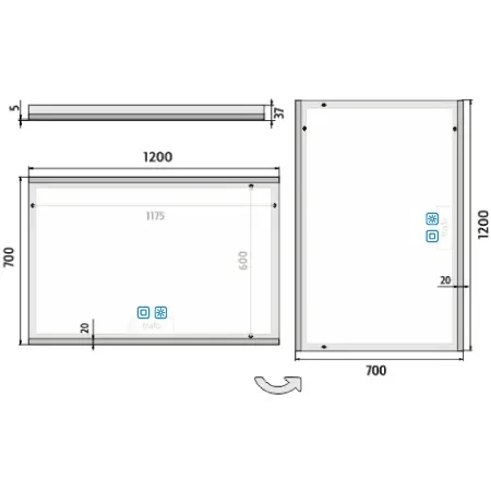 Nimco zrcadlo LED 1200 x 700 Model ZP12000 se dvěma dotykovými senzory ZP 12006VX