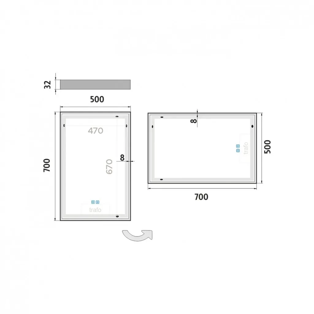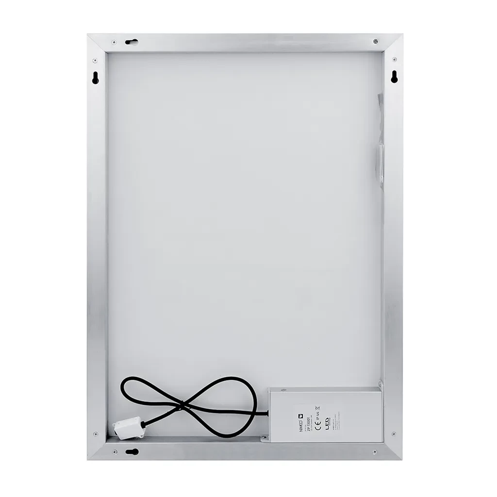 Zrcadlo do koupelny 50x70 cm s osvětlením v tenkém rámu po obvodu, dotykový spínač je skvělým doplňkem do koupelny. Zrcadla do koupelny NIMCO vynikají kvalitním zpracováním a moderním designem. Osvětlení zajišťují výkonné LED diody po celém obvodu zrcadla zakryté 8 mm rámečkem. Konstrukce z hliníkového rámu 32x19 mm, sklo zrcadla o tloušťce 5 mm. Připojení 220-240 V. Zapínání / vypínání / ovládání dotykovým senzorem. Možnost nastavení barevné teploty svícení a intenzity svítivosti. Životnost LED diod je až 50 000 hodin. Ochrana IP 44.