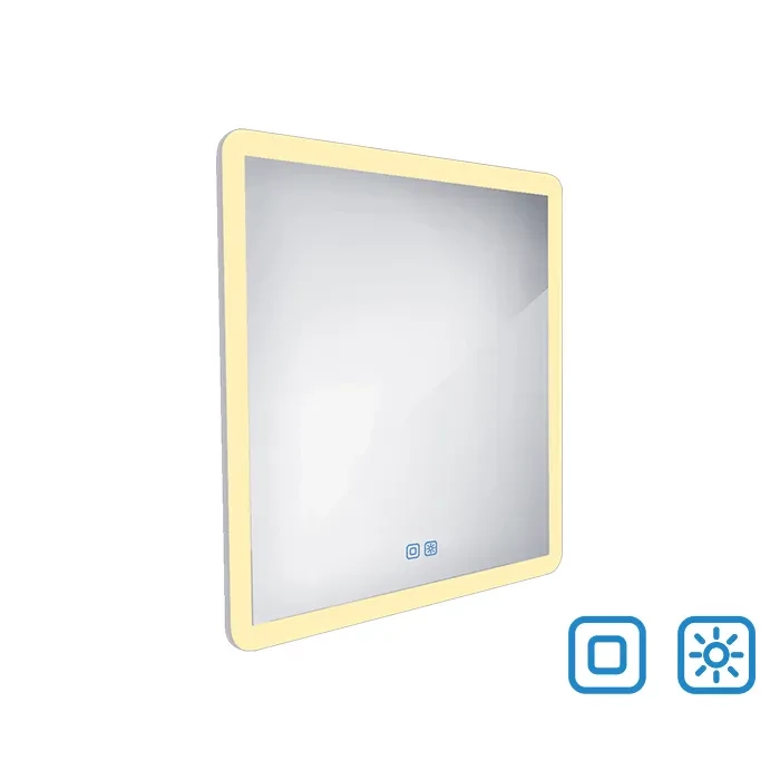 Zrcadlo do koupelny 60x60 čtvercové s osvětlením, dotykový spínač je skvělým doplňkem do koupelny. Zrcadla do koupelny NIMCO vynikají kvalitním zpracováním a moderním designem. Svícení za použití akrylátového skla plexiglass. Konstrukce je z hliníkového rámu 32x19 mm, sklo zrcadla o tloušťce 5 mm. Připojení 220-240 V. Zapínání / vypínání / ovládání dotykovým senzorem s pamětí. Možnost nastavení barevné teploty svícení a intenzity svítivosti. Životnost LED diod je až 50 000 hodin. Ochrana IP 44.