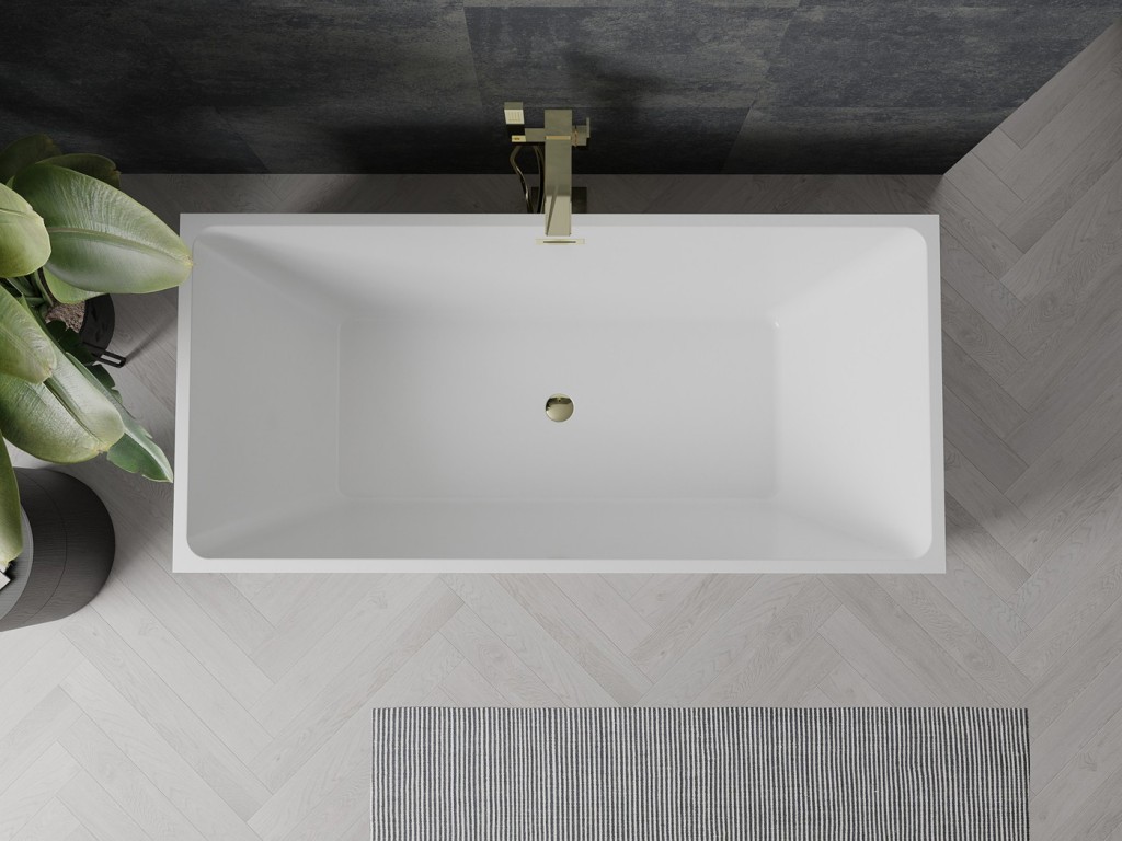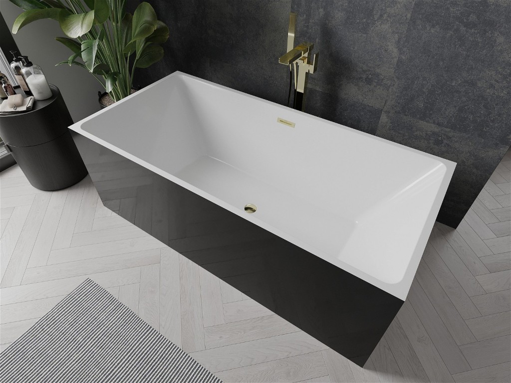 Mexen Nita je stylová volně stojící vana o rozměrech 170 x 80 cm, ideální do moderních interiérů. Vyrobeno ze sanitárního akrylátu, poskytuje dlouhotrvající odolnost proti zašednutí a UV záření. Elegantní černobílá barva se zlatým povrchem dodá luxus každé koupelně. Vana má přepadový otvor a sada obsahuje sifon a zátku click-clack, která usnadňuje instalaci. Díky svému promyšlenému designu dokonale zapadá do estetiky minimalistických aranžmá.