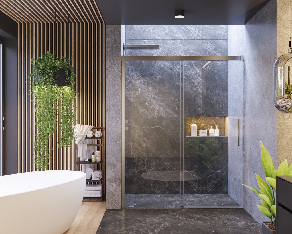 Zástěnu lze instalovat i bez vaničky přímo na podlahu a vytvořit tak bezbariérový kout.