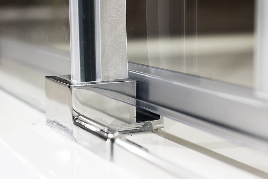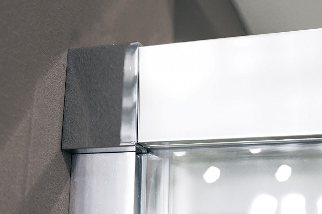 Sprchový kout obsahuje tenkou spodní lištu pod dveře.
