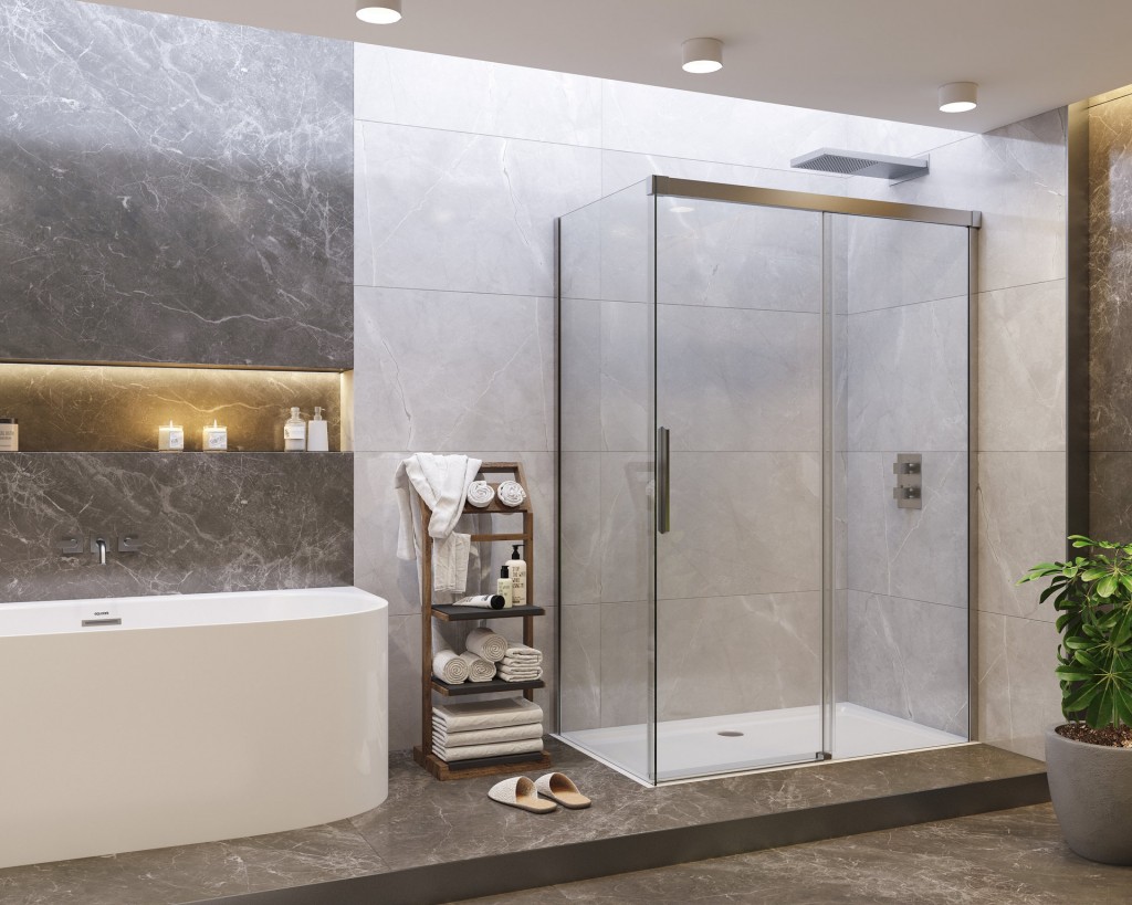 Zástěnu lze instalovat i bez vaničky přímo na podlahu a vytvořit tak bezbariérový kout.