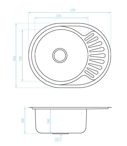 Dřez má jednu komoru o hloubce 160 mm a celkové rozměry 570 × 450 mm. Je vhodný pro instalaci do spodní skříňky od 50 cm šířky. Díky oboustrannému provedení lze orientaci dřezu přizpůsobit konkrétním potřebám kuchyňské linky.