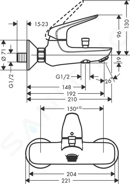 - průtok vanovým výtokem (při 0,3 MPa): 19 l/min