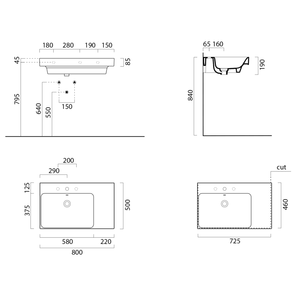 GSI - NUBES keramické umyvadlo 80x50cm, s odkládací plochou vpravo, bílá ExtraGlaze (9629111)