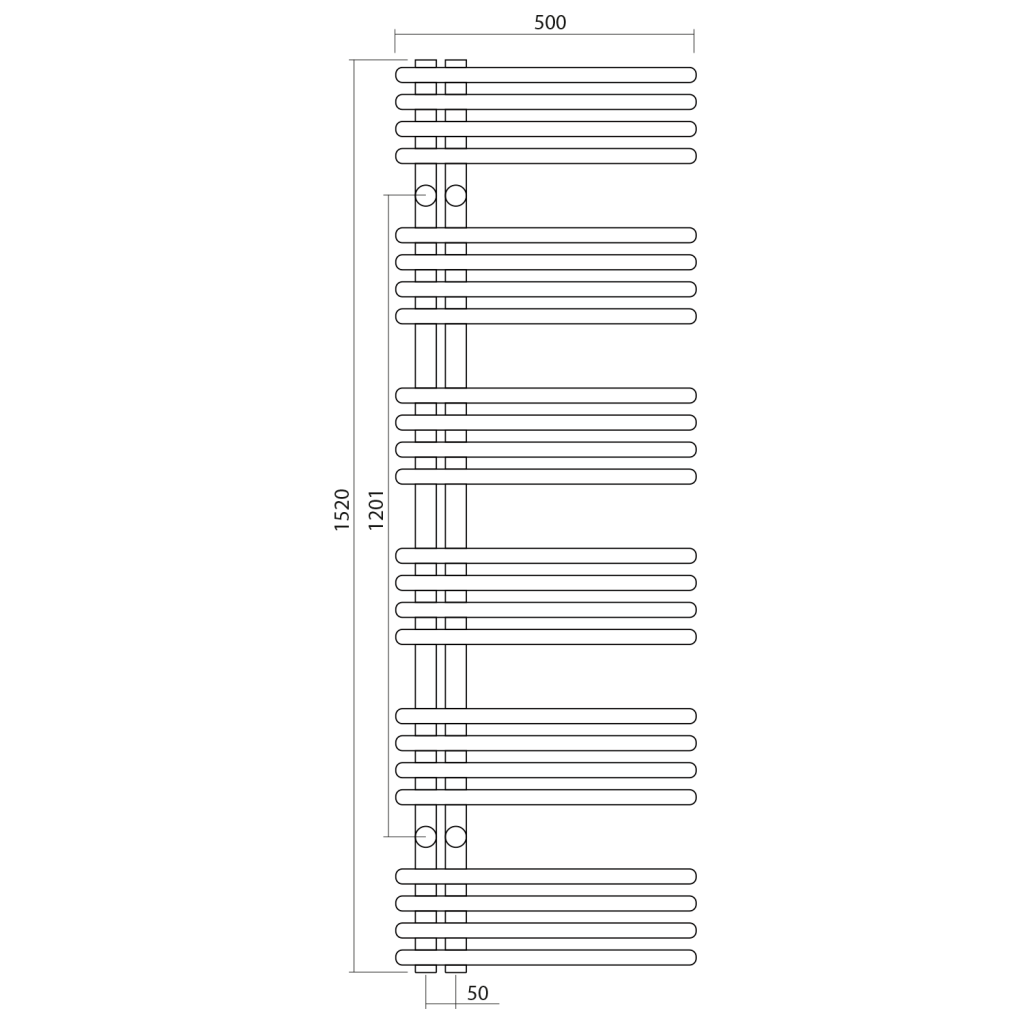 Klasické trubky s kruhovým profilem sestavené v designový radiátor, který lze díky středovému připojení s roztečí 50 mm kombinovat s designovými ventily z naší nabídky.