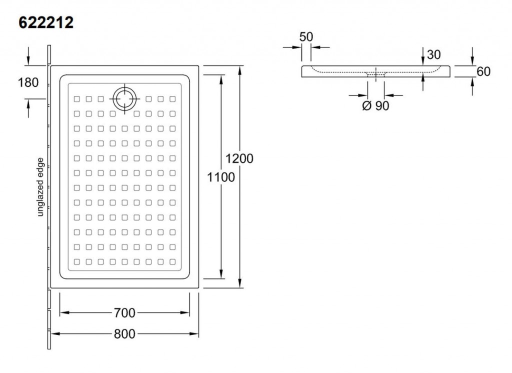 Obdélníková sprchová vanička s drobnými protiskluzovými výstupky