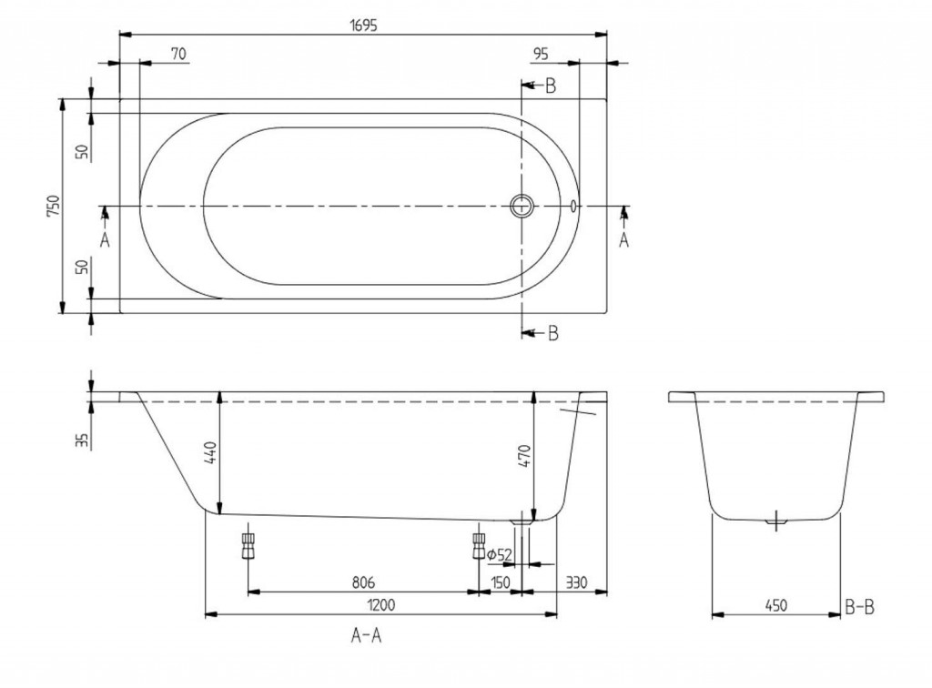 Vanové nožičky a sifon nejsou součástí dodávky.