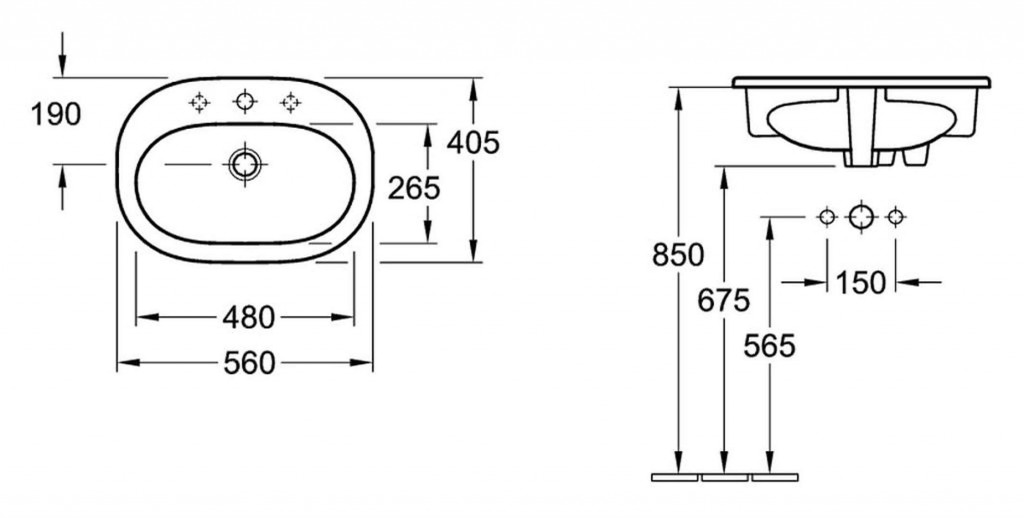 Zápustné umyvadlo na desku nebo koupelnovou skříňku