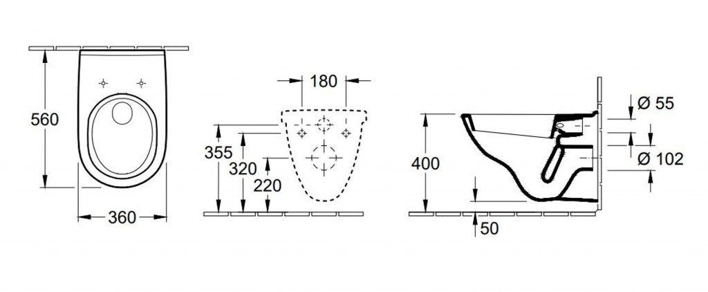 - závěsné WC s vodorovným odpadem, hluboké splachování