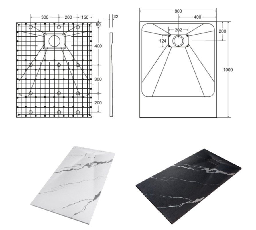 Elegantní ultratenká sprchová vanička VEXO MARBLE ČERNÁ je vyrobena ze speciálního SMC materiálu. Dodává se včetně sifonu, ale bez nožiček. Krytka sifonu je součástí balení.
