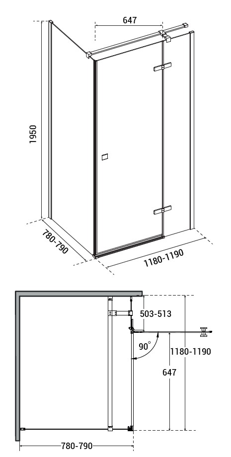 - 120 × 90 × 195 cm (montážní rozměr 118 - 119 × 88 - 89 cm)