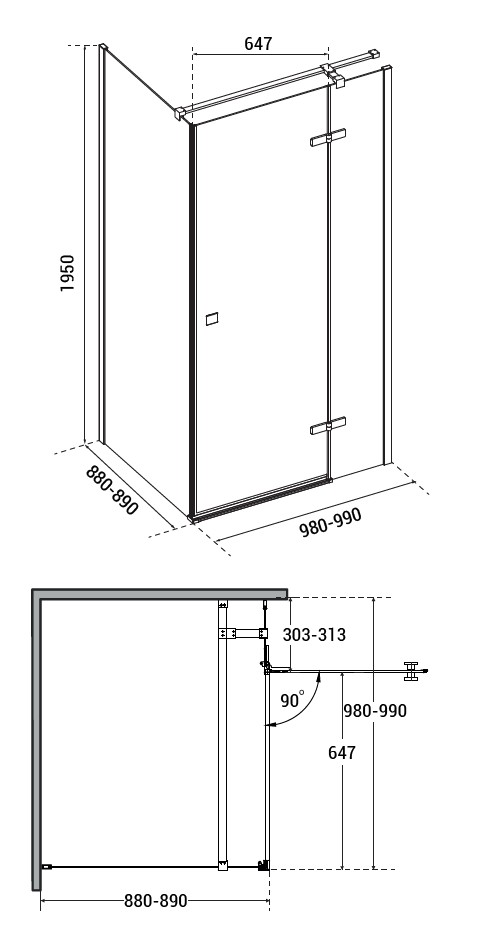 - 100 × 90 × 195 cm (montážní rozměr 98 - 99 × 88 - 89 cm)