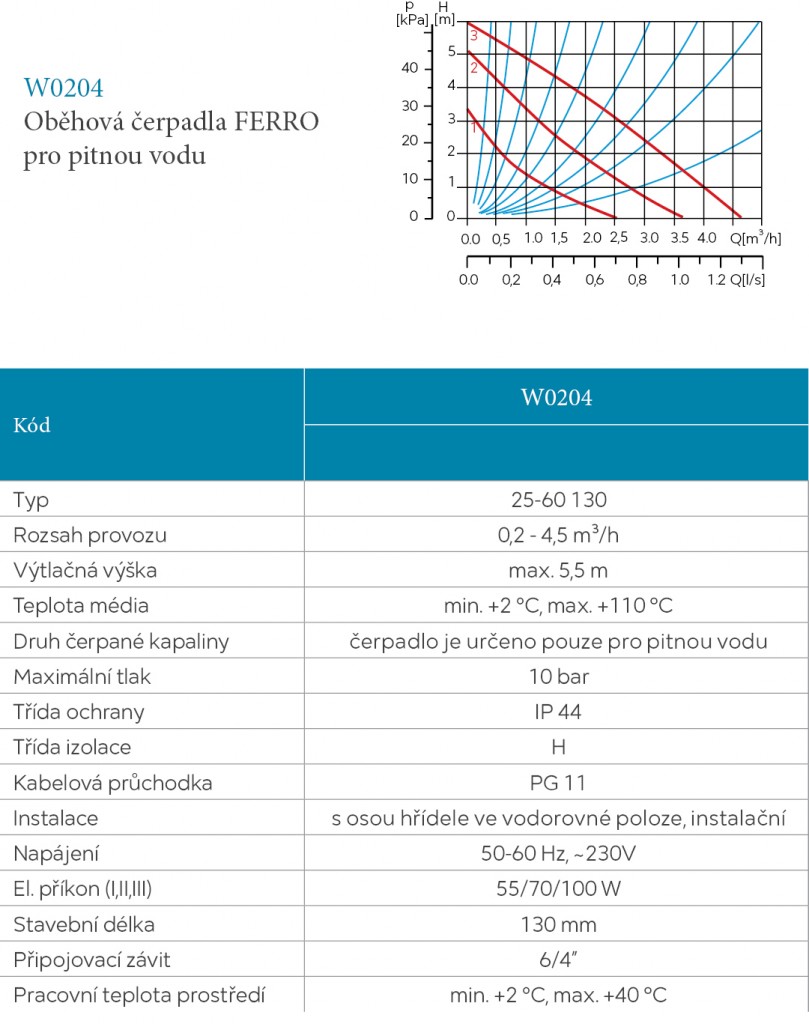 Oběhové čerpadlo pro pitnou vodu 25-60/130mm