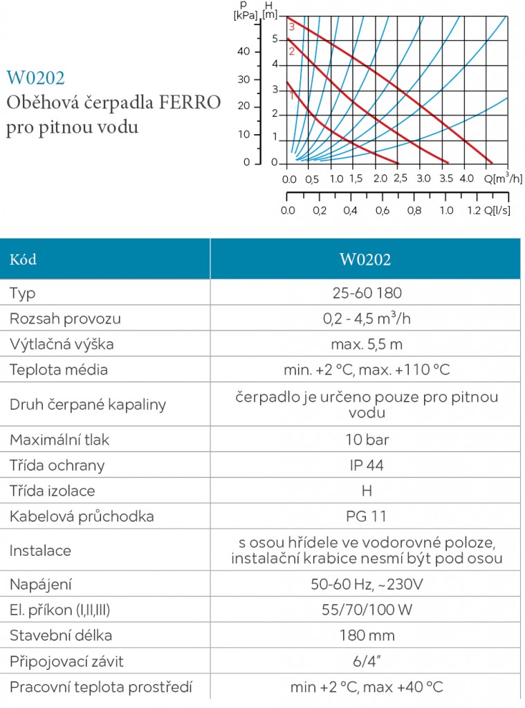Oběhové čerpadlo pro pitnou vodu 25-60/180mm
