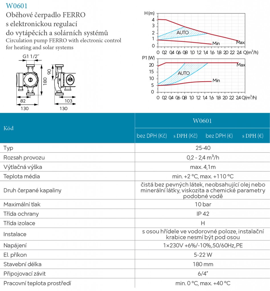 Oběhové elektronické čerpadlo Ferro 25-40/180mm