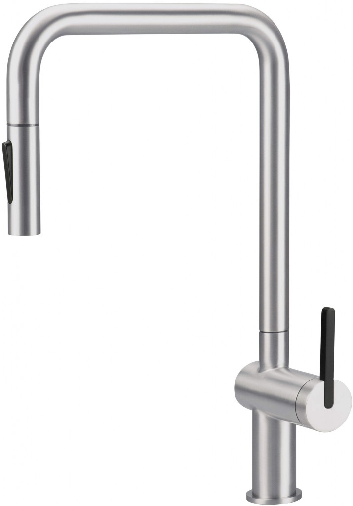 Kuchyňská baterie Momi, vyrobená z kvalitní nerezové oceli, se vyznačuje elegantním obdélníkovým výtokem, který dodává celé baterii moderní a stylový vzhled. Díky integrovanému provzdušňovači je voda provzdušněná, což nejen šetří vodu, ale zároveň zajišťuje příjemný a efektivní proud. Vytahovací výtok nabízí maximální flexibilitu a pohodlí při používání, což usnadňuje manipulaci s vodou a práci v dřezu. Baterie Momi disponuje dvěma typy proudu – standardním provzdušněným pro běžné mytí a jemným dešťovým proudem, který je ideální pro šetrné oplachování ovoce a zeleniny.