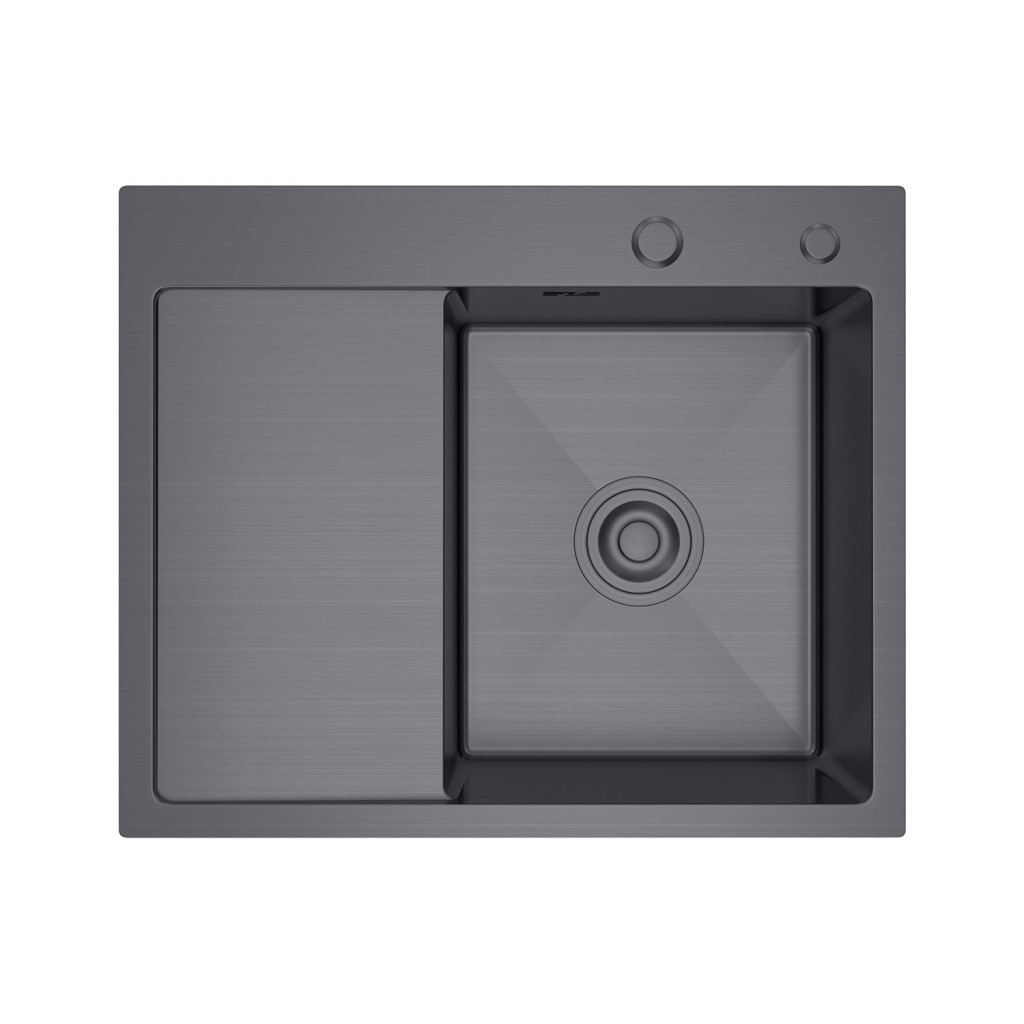 Kuchyňský dřez je k dispozici také ve variantě s odkládací plochou umístěnou na pravé straně. Tato verze je ideální pro uživatele, kteří preferují opačné uspořádání pracovního prostoru a potřebují větší flexibilitu při plánování kuchyňské linky.