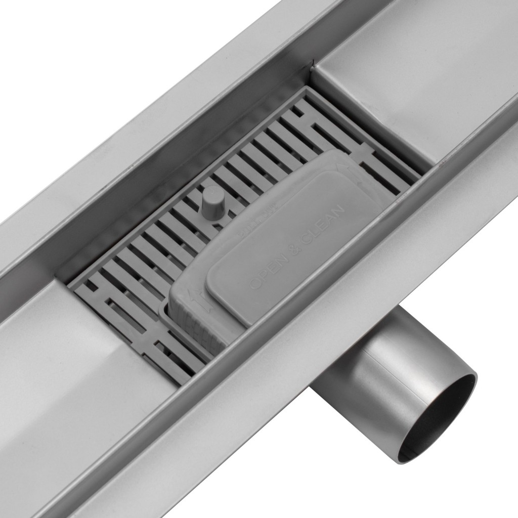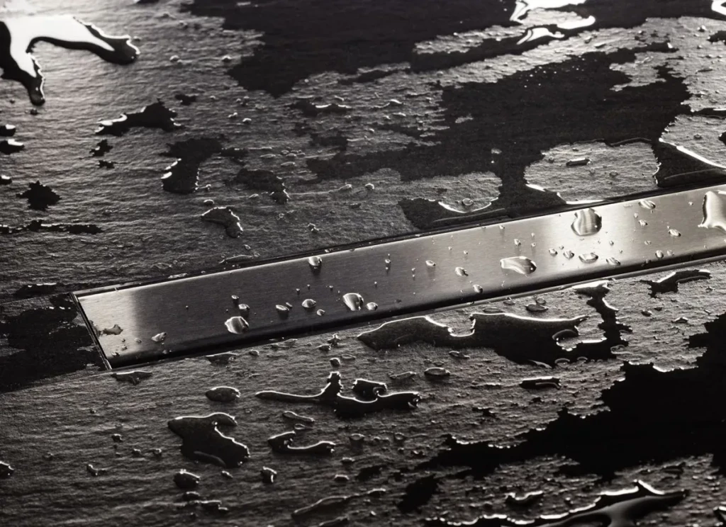 Profil, který kryje odtok, je otočný. Na jedné straně najdete elegantní nerezovou ocel, na druhou stranu můžete usadit dlaždičku, která celý žlab zamaskuje. Vznikne tak téměř neviditelná drážka pro odtok vody.