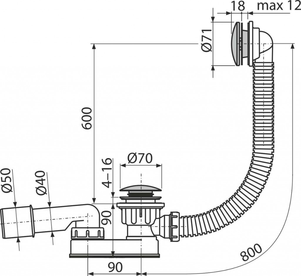 - délka vanového sifonu: 800 mm